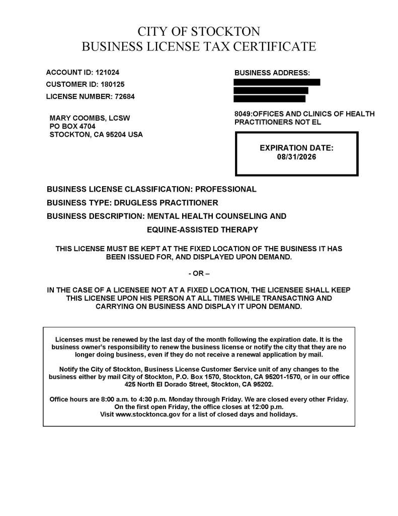 Please note that my licenses are associated with my home addresses, as such some information is blacked out in order to protect my privacy. .